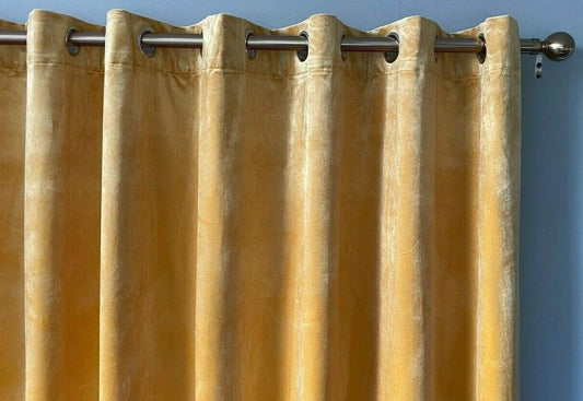 Eyelet Curtains Ring Top Lined Curtains ITALY Plush Velvet MUSTARD YELLOW