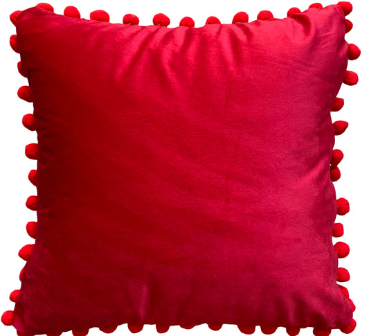 Pom Pom Cushion or Cover Plain Holland Plush Velvet 17" x 17"