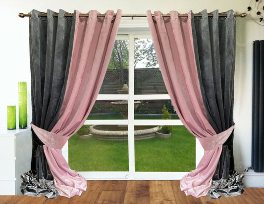 Ring Top Eyelet Curtains ITALY Plush Velvet 2 tone BLUSH PINK/grey