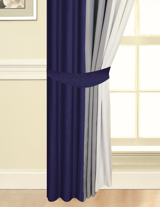 Navy Blue Eyelet Pair of curtains Ring Top Fully Lined 3 Tone Navy Grey White
